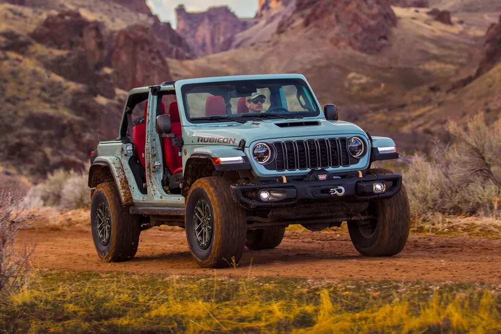 La línea de modelos Wrangler de Jeep ha establecido un nuevo estándar en equipamiento de serie para el 2024. Sport, Sport S, Willys, Sahara, High Altitude, Rubicón, Rubicón X y Rubicón 392. El equipamiento de serie para el acabado Sport incluirá una radio con pantalla táctil de 12.3 pulgadas, techo blando premium y refuerzo central en tejido IP gris Soul Gray. En el acabado Sport S se añade el control de crucero adaptativo, advertencia de colisión frontal y parabrisas de cristal Gorilla.