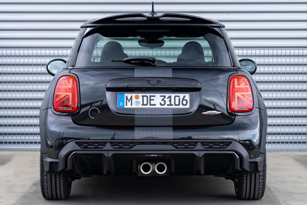 El diseño exterior del vehículo rinde homenaje a la historia de MINI en el automovilismo. Desde el capó hasta el alerón y el faldón trasero, el Bonnet Stripe destaca con gráficos específicos de la edición. El logotipo de la edición en plata, blanco y rojo resalta su estatus de edición limitada.