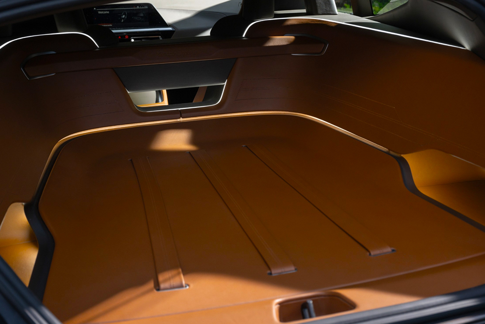 La pintura exterior combina tonalidades gris-marrón con incrustaciones de vidrio azul, logrando una impresionante profundidad visual. Detalles en plata-bronce y una parrilla doble en forma de riñón, diseñada exclusivamente con barras longitudinales, completan el aspecto distintivo.