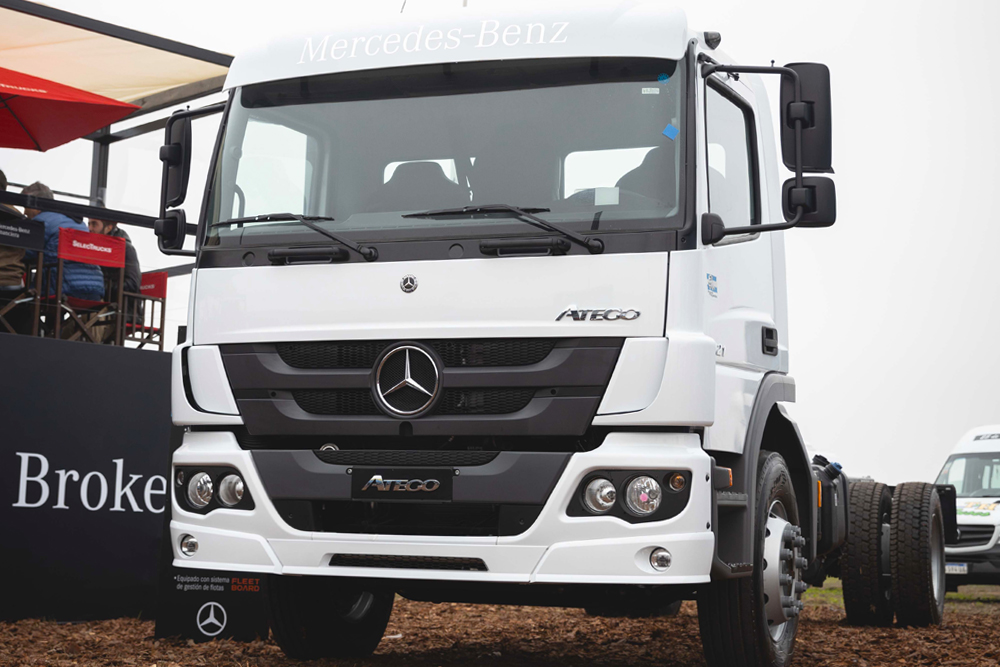 Entre los destacados de la exhibición se encuentran los camiones Atego 1729/42 y Atego 1729 S/36, de producción nacional. Estos vehículos cuentan con una potencia de 286CV y una transmisión automatizada de 12 velocidades Mercedes-Benz PowerShift G 211, que brinda mayor confort y seguridad al conductor. Además, su eje tractor de velocidad simple HL4 permite reducir el consumo de combustible. Estos camiones son ideales para tareas agrícolas, transporte de granos, ganado y maquinaria especializada.