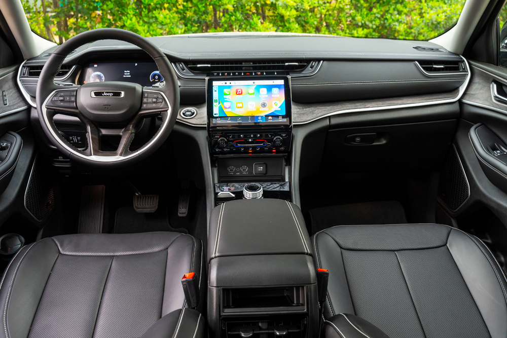El interior del vehículo es igualmente impresionante, con asientos de cuero ventilados y calefaccionados, techo panorámico de doble panel y una pantalla multimedia de 10.1 pulgadas. Además, el Grand Cherokee Limited está equipado con un potente motor PENTASTAR V6 de 3.6 litros, tracción 4×4 Quadra-Trac II y una amplia gama de características de seguridad y tecnología avanzada.