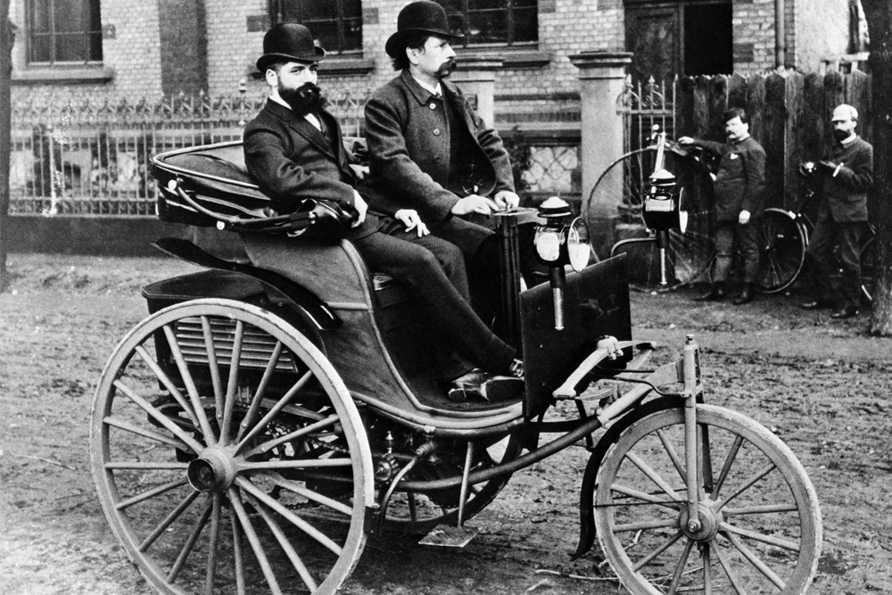 Los primeros vehículos de Benz estaban equipados con ruedas de madera y radios de alambre de metal fino. A medida que avanzaba el tiempo, se incorporaron radios atornillados y llantas de acero,. Las ruedas de disco se hicieron populares en autos deportivos, como el «Blitzen»-Benz de 1911, conocido por ser el vehículo más rápido de su época con una velocidad máxima de 228 km/h.