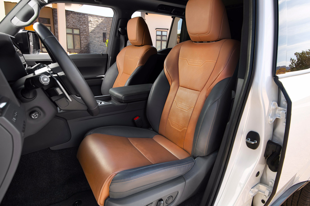 El diseño exterior resalta por su robustez: mide 4960 mm de largo y monta llantas de 20 pulgadas, otorgándole una presencia imponente. Su parrilla frontal renovada y los faros LED de triple haz refuerzan su imagen agresiva y aventurera. En el interior, el GX combina lujo y tecnología, con capacidad para siete pasajeros, asientos calefaccionados y ventilados, y un sistema multimedia de alta gama firmado por Mark Levinson con 21 altavoces y pantallas HD.