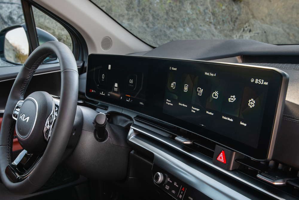 En el interior, la Carnival ofrece una experiencia futurista con una pantalla curva panorámica de 12,3” + 12,3” que integra conectividad inalámbrica para dos dispositivos, compatibilidad con Android Auto y Apple CarPlay, y múltiples puertos USB-C. Además, el doble techo solar y los asientos de cuero ecológico calefaccionados elevan la comodidad de los pasajeros. La nueva llave inteligente de Kia permite operar puertas y portón eléctricos, alzacristales y hasta encender el motor de forma remota.
