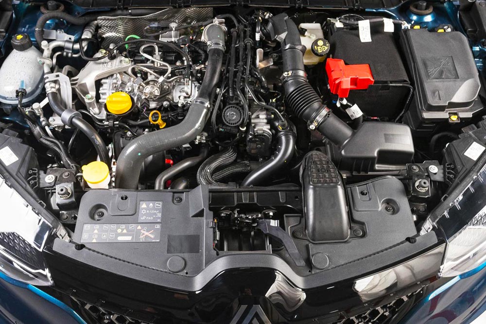 El Arkana E-Tech Hybrid incorpora un motor 1.3L Turbo mild-hybrid, que entrega 140 CV y un torque de 260 Nm, acompañado de una transmisión automática EDC de 7 velocidades. Gracias al sistema de hibridación ligera, el vehículo reduce emisiones y optimiza el consumo de combustible, ofreciendo una conducción más limpia y eficiente.