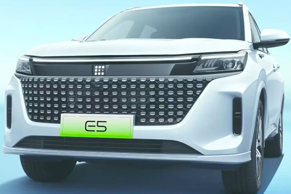 El E5 tiene una carrocería de 4,76 metros de largo y un paso de 2,75 metros, lo que se traduce en un habitáculo espacioso. Completan su imagen llantas de aleación de 18 pulgadas y tres colores a elección: blanco nieve, gris plateado y negro ónix.