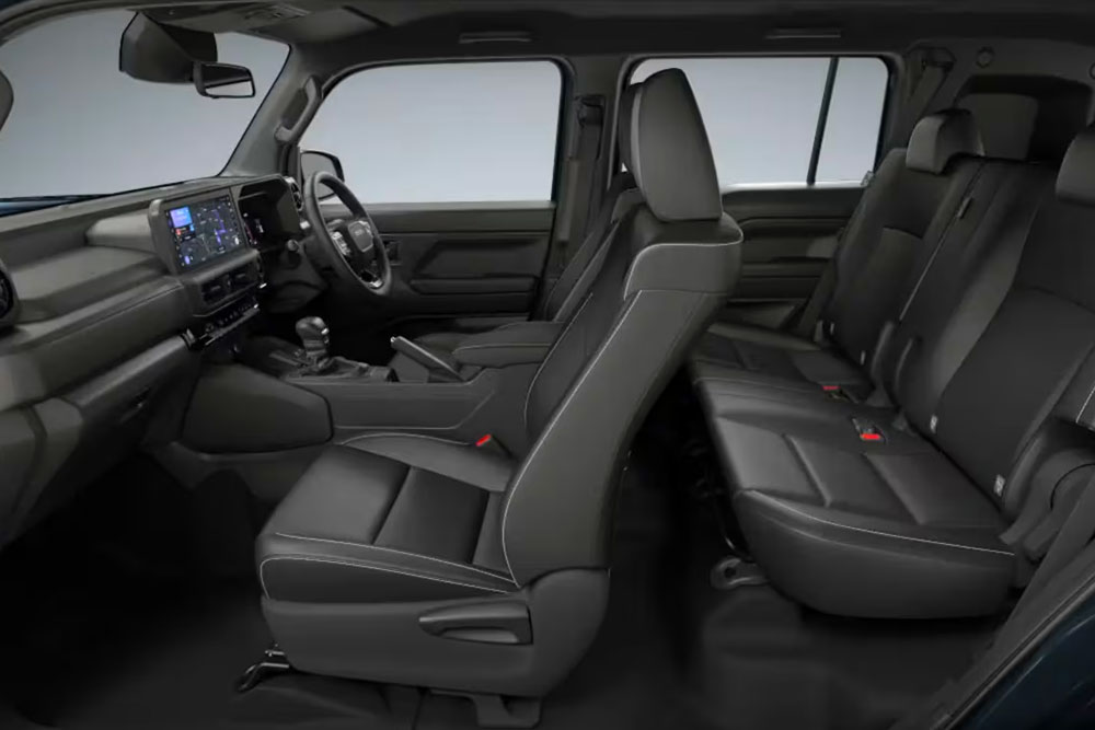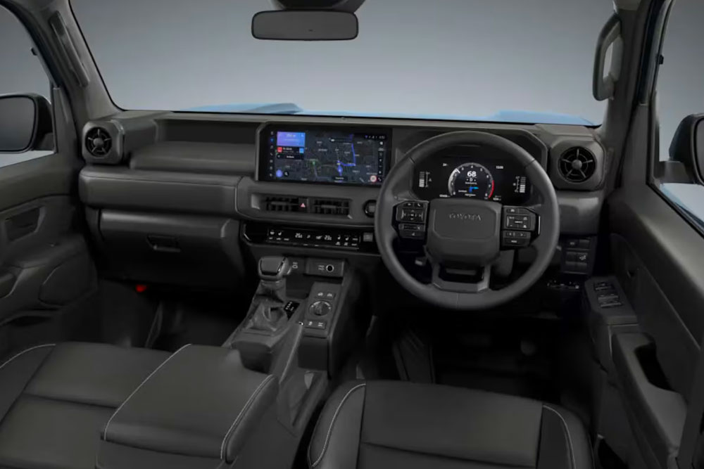 Adentro, el FJ mantiene la estética de líneas rectas. Viene con capacidad para cinco pasajeros, un tablero completamente digital y una pantalla multimedia de tipo flotante.