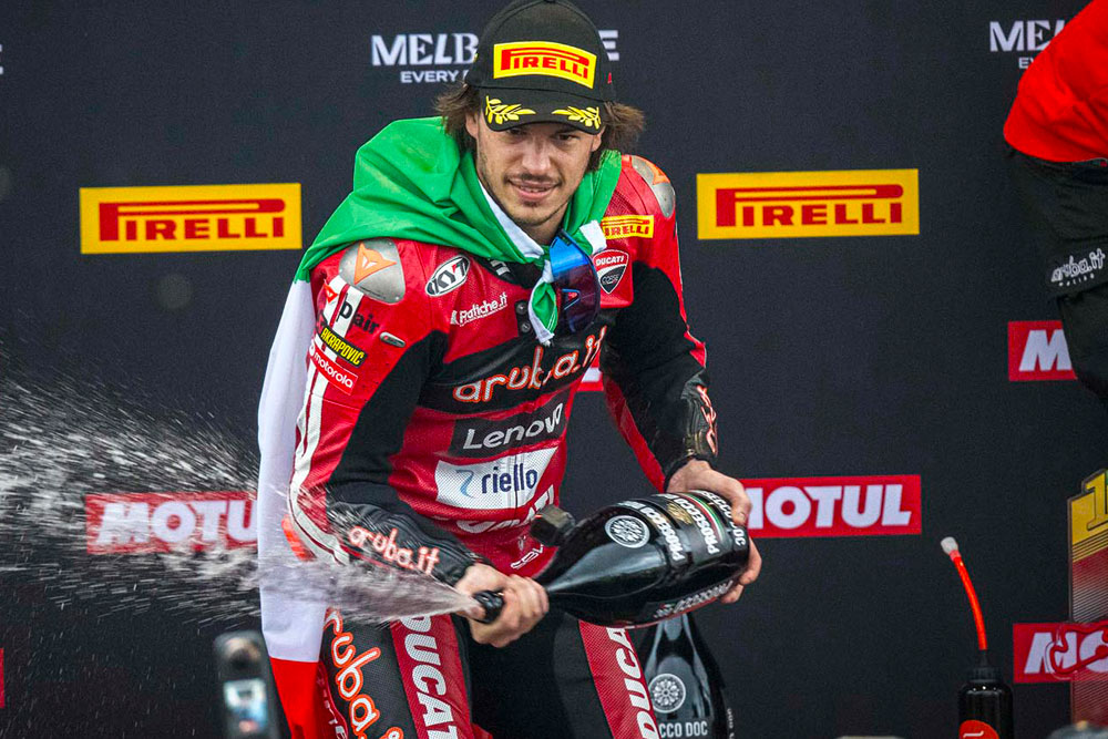 El piloto del Aruba.it Racing-Ducati se quedó con todas las carreras del fin de semana en Phillip Island, alcanzó su victoria número 23 y se convirtió en el italiano más ganador de la categoría. La marca de Borgo Panigale celebró por partida doble: sumó su triunfo 450 en WorldSBK y metió varios pilotos en el podio.